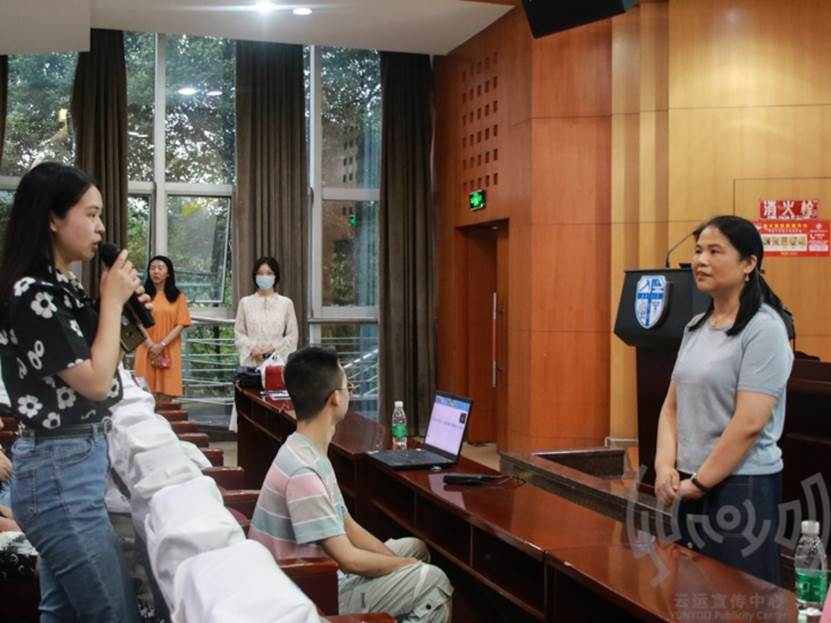 黄春蓉副处长先向在场同学提出了问题“关于就业与考研,目前你最想了解什么?”,同学们踊跃发言,现场气氛活跃。随后,她详细对比了就业和考研两个方向同学们会遇到的问题,也从“宏观、中观、微观”三个方面详细阐释了当今的就业考研形势。她建议同学们要把握整体形势,在实践和锻炼当中成长,认识自己,客观地了解自己的优势和劣势,找到适合自己的方向。随后,列举了新的就业形态和往届毕业生们职场发展的心得和体会,并鼓励同学们认真思考自己未来的选择,为求职做好准备。同学们深受启发,全场掌声雷动。