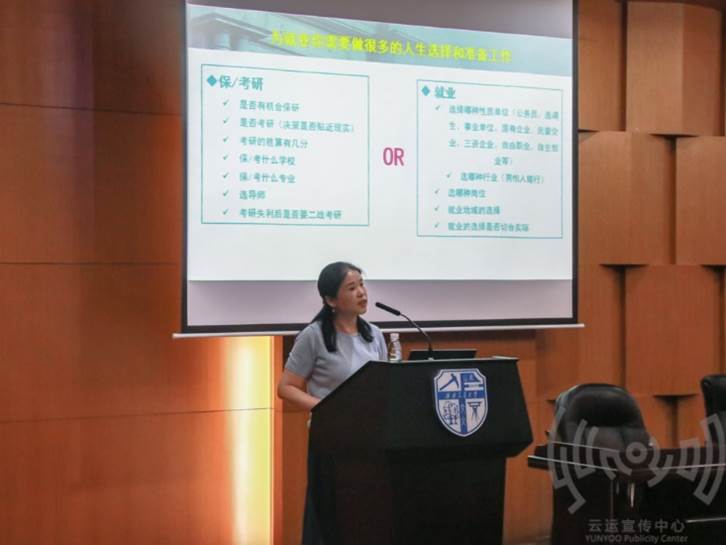 大会的第一个环节,人才招聘处的黄春蓉副处长以“准确把握就业形势,以积极心态迎接就业季的到来”为主题为同学们进行了分享。