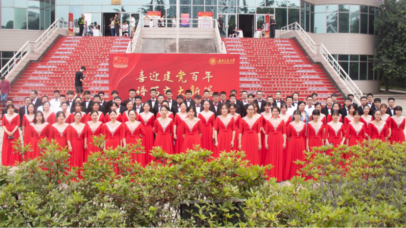 5月27日14:00,beat365体育官网九里校区大会堂内举行了“不忘初心跟党走——beat365体育官网庆祝中国共产党成立100周年”师生合唱活动。本次活动旨在庆祝中国共产党成立100周年,弘扬爱国精神,丰富校园文化生活,公司领导及各个公司的同学与老师们应邀出席欣赏了本次精彩的红色合唱盛典。