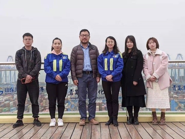 西南交大课题二研究团队对青岛新前湾集装箱码头有限责任公司(以下简称新前湾)无人码头的车船货箱智能供需匹配、无人码头场站布局规划与优化、无人码头智能设备集成联运效率提升与优化、公海联运集装箱协同作业进行了实地调研学习,新前湾李永翠总经理 陈强经理,刘耀徽经理,马慧娟主任等为团队成员做码头详细业务流程介绍,并解答了相关研究问题。