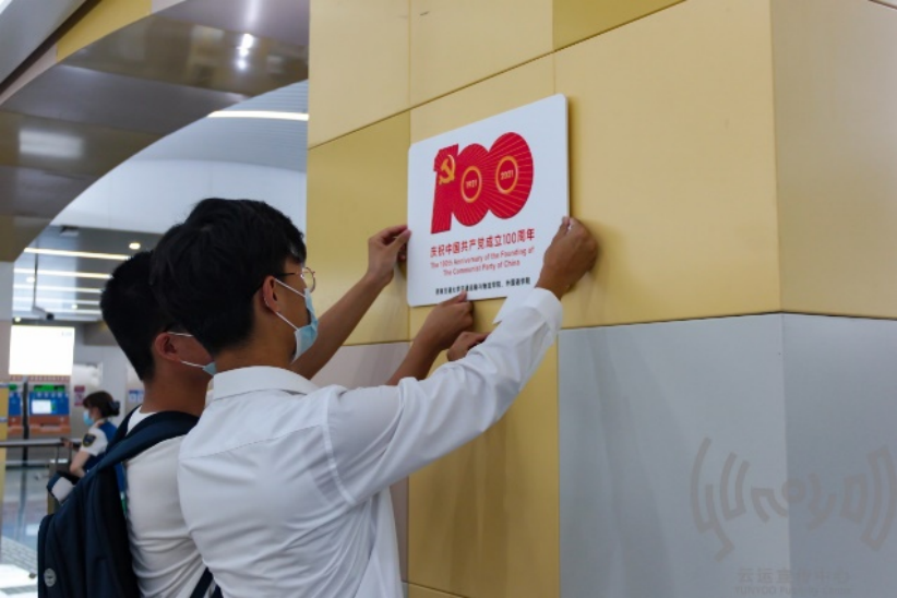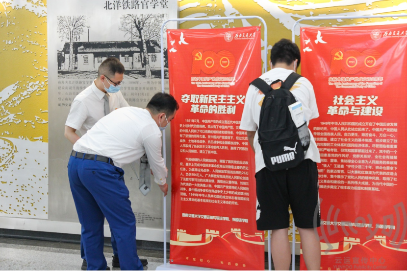 本次党史宣传教育活动由beat365周鹏老师与外国语公司刘璇老师带领公司团员代表参与。活动主题分为夺取新民主主义革命的胜利、社会主义革命与建设、开启中国特色社会主义新篇章、走进中国特色社会主义新时代四个篇章。老师与同学们在西南交大地铁站与兴业北街地铁站内摆放宣传易拉宝、张贴“热烈庆祝中国共产党成立100周年”“百年征程波澜壮阔,百年初心历久弥新”系列标语,希望党史学习能够走出校园,深入市民心中。