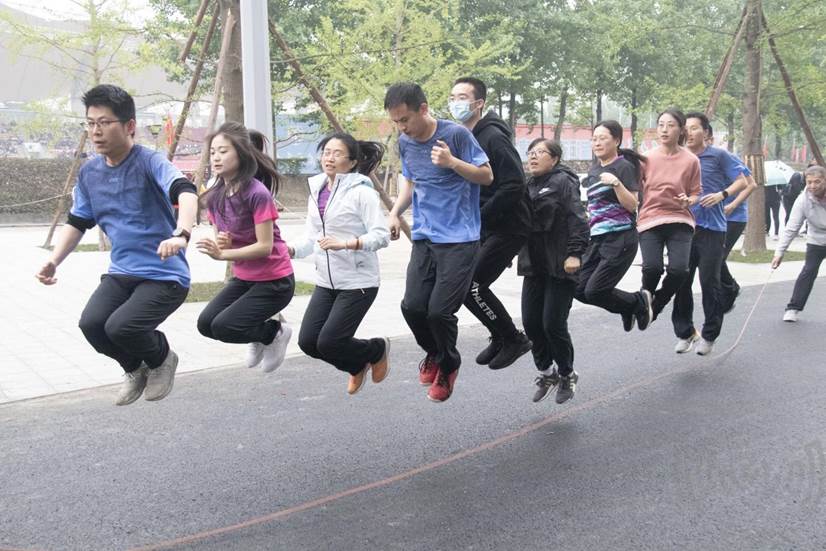 巨龙般的长绳上下翻飞;交运的老师们轻捷如燕,跳跃自如;交运的老师们威猛如鹰,配合默契,最终摘得第一名的桂冠。