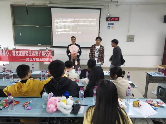 第一个环节是破冰小游戏—名字游戏,主要目的是让同学们互相介绍自己。游戏规则:随机选取一位同学做自我介绍,并说出下一位进行介绍的同学名字;若说不出下一位同学的名字,则进行歌曲演唱或讲述研究生以来的有趣经历;每次歌曲演唱或讲述一段自我经历,则得到奖品一份。经过一轮精彩的游戏后,同学们互相记住了名字,取得了预期的游戏效果。