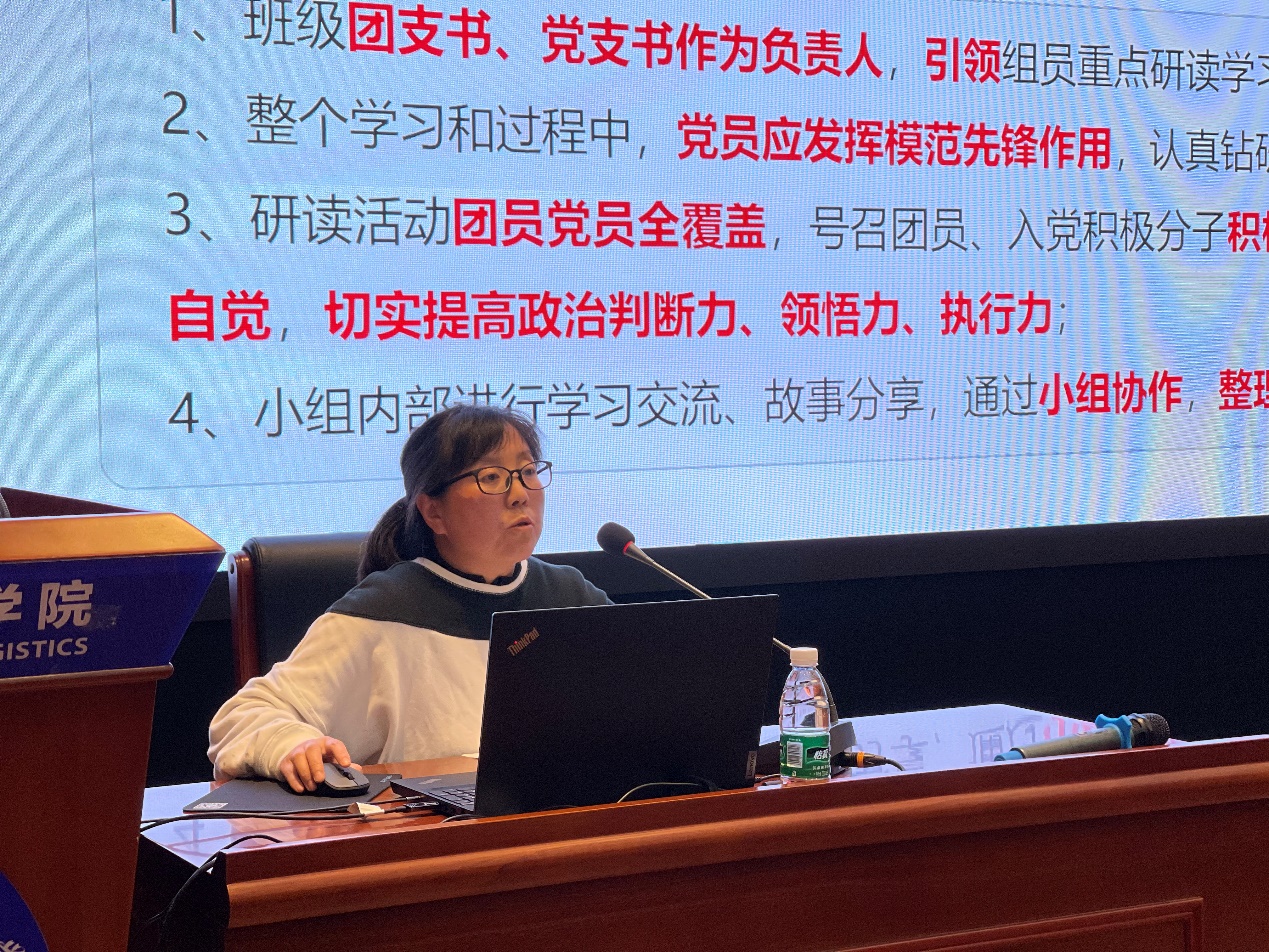 学工组张素风老师首先为大家介绍“明理力行”理论学习小组活动的总体安排,对研读活动的主题、背景、内容和安排进行了介绍。交运硕士2020级第二党支部、第八党支部、beat3652020级各团支部和公司3个科研团队的党员组成“明理力行”马克思主义理论学习小组,开展基于中国共产党百年历史的党史研读分享系列活动,活动分三个阶段进行:第一阶段“追寻党史记忆,感怀峥嵘岁月”——导读、自主研读;第二阶段“重温党史故事,凝聚前行力量”——小组研讨学习;第三阶段“讲述党史故事,感受百年风华”——研读分享会。本次活动将通过党史学习,结合学科和行业,回顾百年交通史,中国铁路史,品读在救国、兴国、富国、强国历程中百年交通从艰难到快速发展的历程,激发同学们主动为交通强国战略发奋学习的行动自觉。