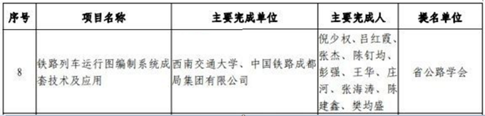 beat365倪少权教授主持的“铁路列车运行图编制系统成套技术及应用”荣获科技进步一等奖。
