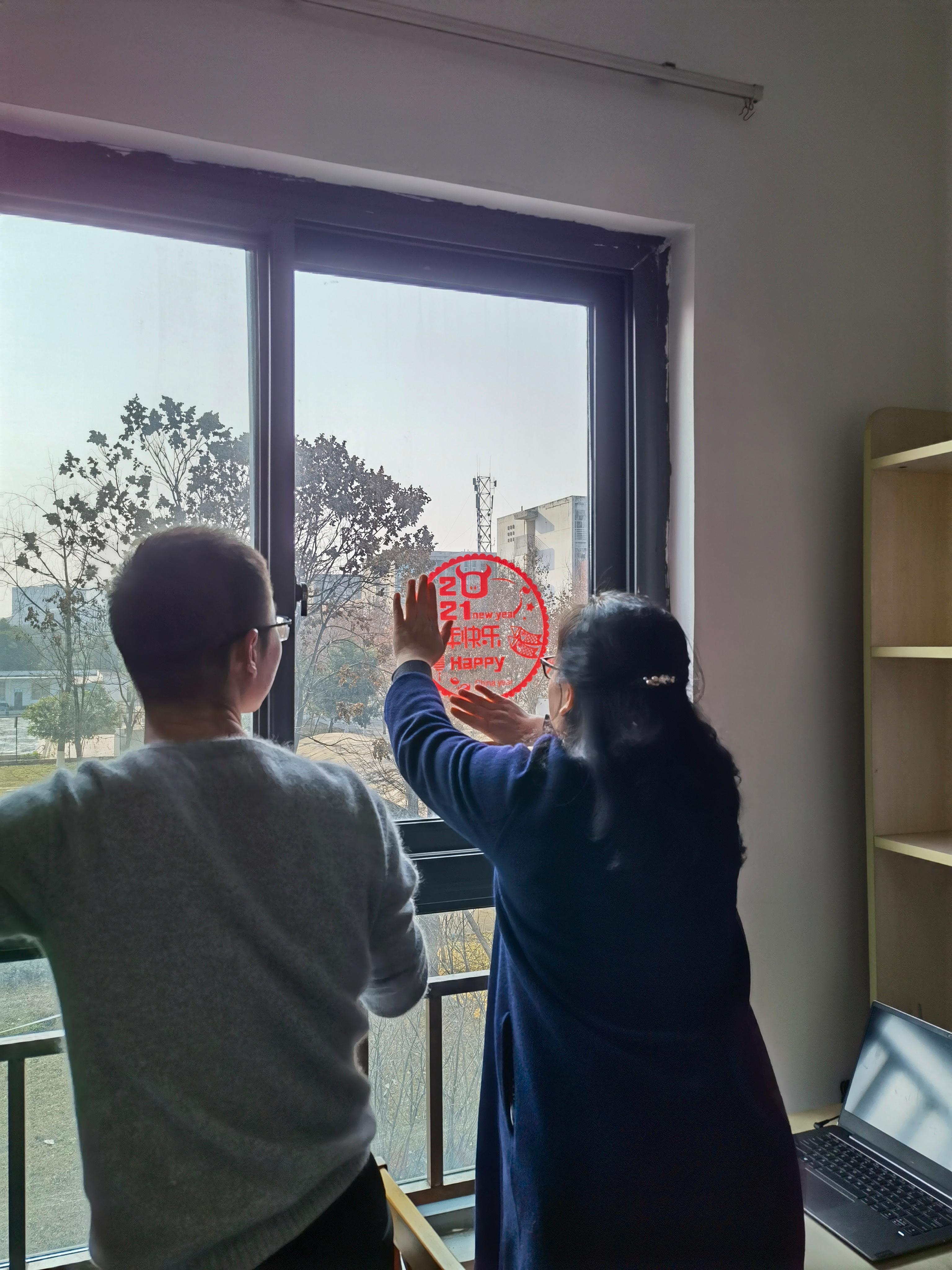 在慰问中老师与同学们一同贴窗花、话家常,慰问中洋溢着新春的喜悦。公司为同学们准备了过年大礼包,旺旺大礼包、坚果、中国结、福字、福牛宝宝,祝福同学们在新的一年里学业进步,诸事遂意。