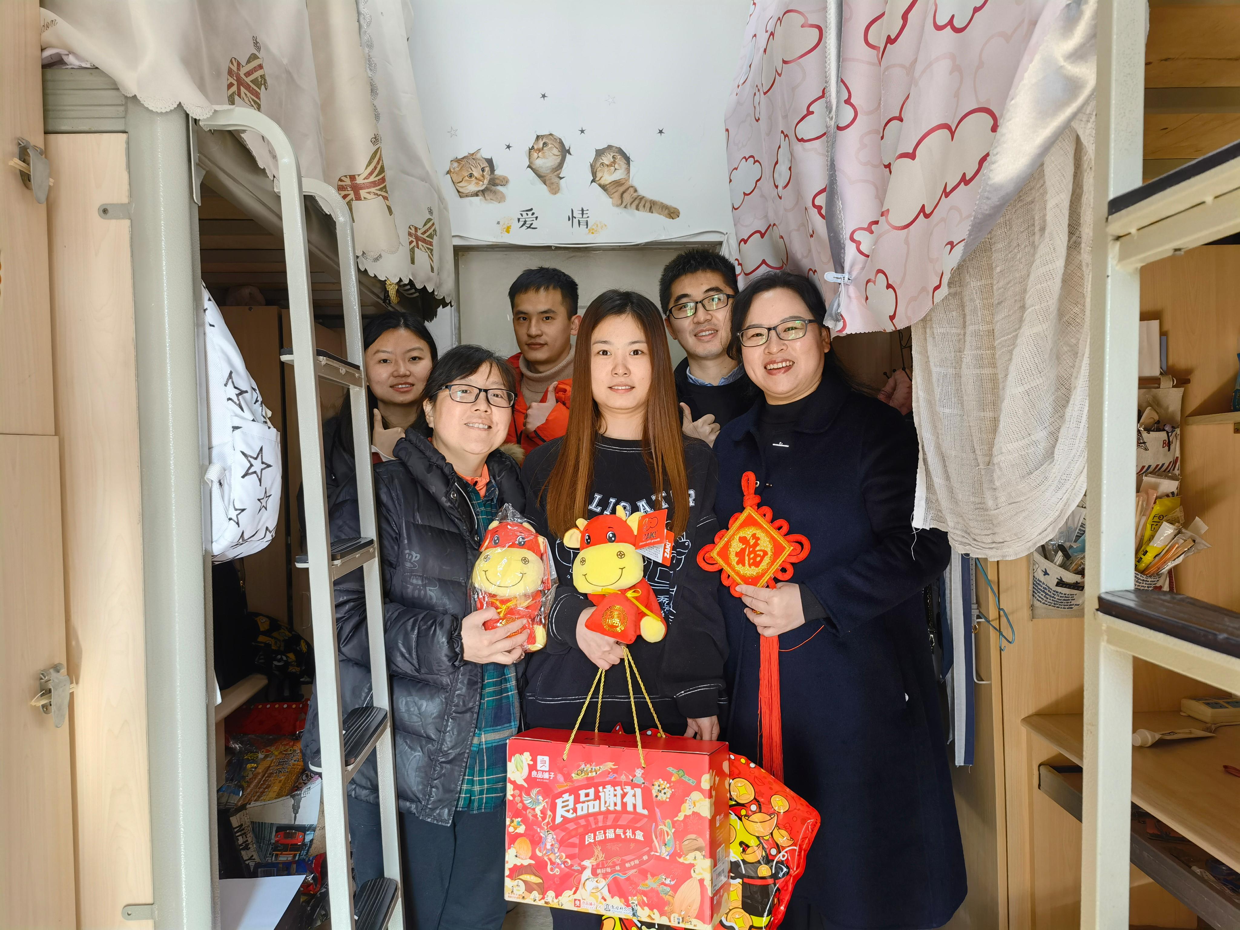 2月5日上午,成都的晴空万里,蓝天下的交大显得格外清新漂亮。在即将迎来农历新年的时候,公司党委副书记李国芳和学工组老师一起慰问因疫情防控留校过年的同学。李书记代表公司对为同学们带去祝福,关心留校同学和生活是否方便,与同学们交谈假期学习生活的安排,嘱托留校期间要正常作息,加强锻炼,安排好自己的学习生活。在慰问中老师们看到同学们留校期间也能坚持锻炼,持续学习,生活学习有序。