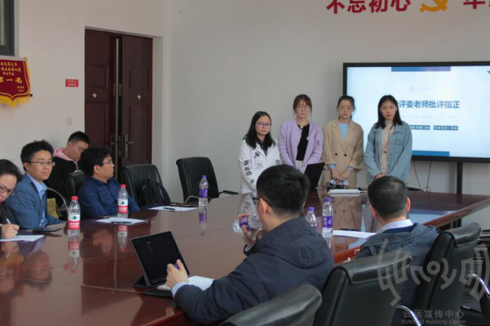 首先进行模拟答辩的是《公铁联运通用货物载运工具设计与接驳转运应用研究》项目小组。该小组分别从项目背景、设计思路、创新点和应用前景四个方面展开了详细的介绍,并以视频的形式展示了他们设计的新型集装箱。