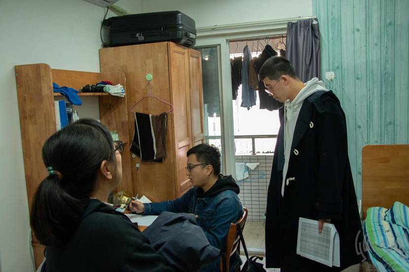 下午16:00,各个突击检查小队准时在交运楼401室集合,队员们认真记录领队老师告知的注意事项后兵分两路,分别前往研究生宿舍和本科生宿舍。前期的充分准备,使突击检查高效、有序地开展。