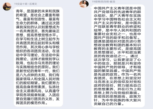 团课的最后,同学们结合自身实际就“疫情‘大考’后的青年担当是什么?”讲述了各自的心得体会。