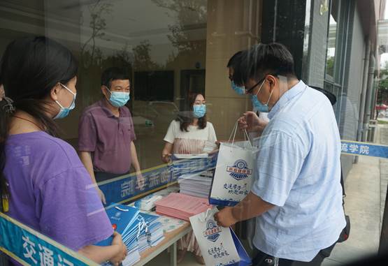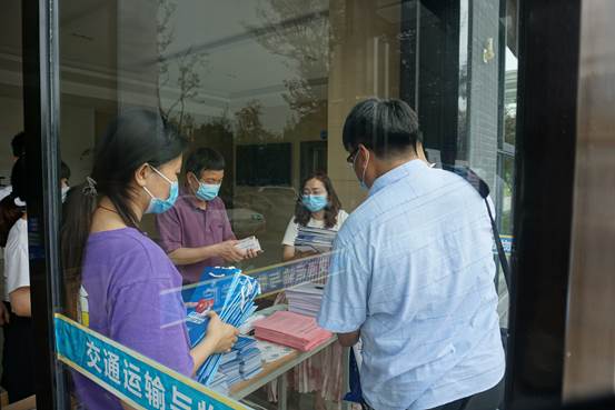 早上,员工工作组老师们已经早早在交运楼前安排好发放点,9点左右迎来了第一批领取“爱心防疫包”的班级代表。“致交运返校员工的一封信”、员工防护指南、体温计、口罩、免洗手液、免洗手凝胶……防疫包内物品一应俱全。防疫包上正面印有“交运学子 欢迎回家”的字样,背面则印有“勤洗手、戴口罩、不串门、多通风”的防疫标语,提醒返校同学们安全防护时刻要放在第一位。