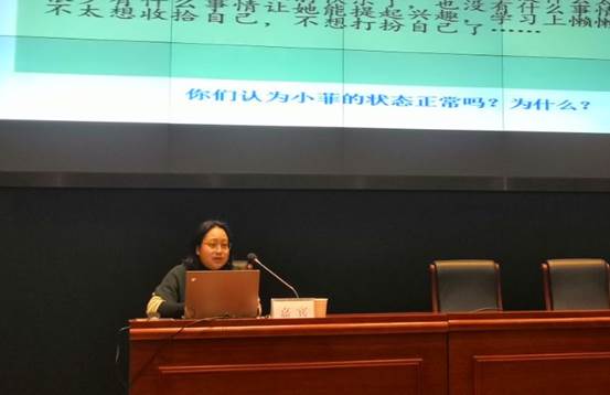 在高老师的带领下,学工组老师们详细了解到基础理论知识,随后与高老师展开热烈交流。高老师针对具体情况为大家解疑答惑,以帮助老师们正确面对和处理日常工作中遇到的困难,并提醒大家日常工作中加强识别与关注,及时帮扶和上报,用耐心和细心更好的帮助到同学们。