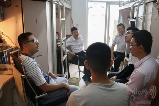 7月7日下午,公司领导亲切走访2016级城轨交运学子宿舍,第一时间了解同学们搬迁后的相关情况并予以关心。公司党委甘灵书记、公司刘晓波经理、公司党委李国芳副书记、公司经理助理蹇明教授以及学工组各位老师依次走访了天佑斋17栋、20栋宿舍楼,与来自于2016级城轨交运同学进行了亲切交谈。