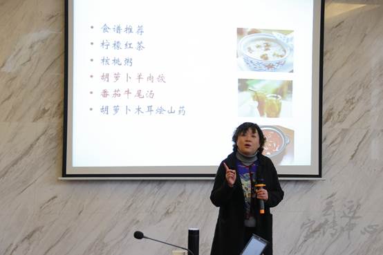 汤朝晖教授是中医学博士,预防医学博士后,曾师从多位中医名家,具有将近30年的中医专业系统学习和实践经验。在主持人简单的开场后,汤教授为在场各位女教职工讲解了女性中医保健的相关知识。