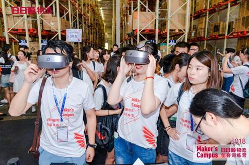 8月8日上午,高校创客学子前往即墨标准仓,深入日日顺物流国家智能化仓储示范基地,充当一日物流师切身感知智慧物流, VR虚拟体验与无人机等现场真实体验轮番上阵。