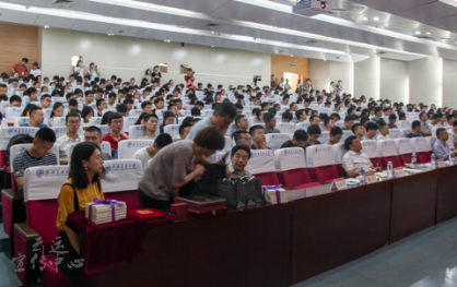 牛大鸿员工就主题“创业,寻找互联网的裂缝”做了精彩的分享。牛员工讲述了自己从刚接触互联网这个行业时,发现这个行业的薄弱点,并一步一步取得如今成就的难忘经历。他以视频、图片、商务现场洽谈等方式和“一带一路”、产业园区等案例为同学们演示,重点介绍了产业园区相关内容,对各方面作了详细讲解。牛员工最后提出,一定不要忽视创新的力量!