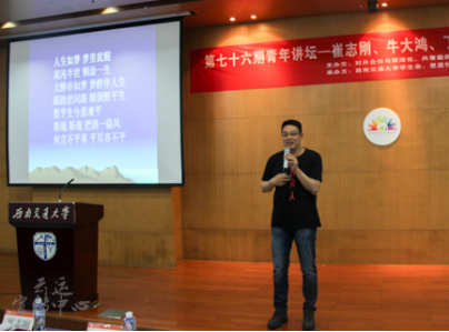 接下来的青年讲坛,崔志刚员工围绕着主题“我的中国诗”为大家带来一场激情澎湃的演讲。崔员工以自己的亲身经历为例,从母校毕业到分配到工作岗位再到从岗位离职,从刚接触播音再到如今,一字一句都是对同学们的谆谆教诲,希望公司员工今后不仅术业有专攻,更真正做到“文理交通”,正如校歌中“灌输文化尚交通”一般。