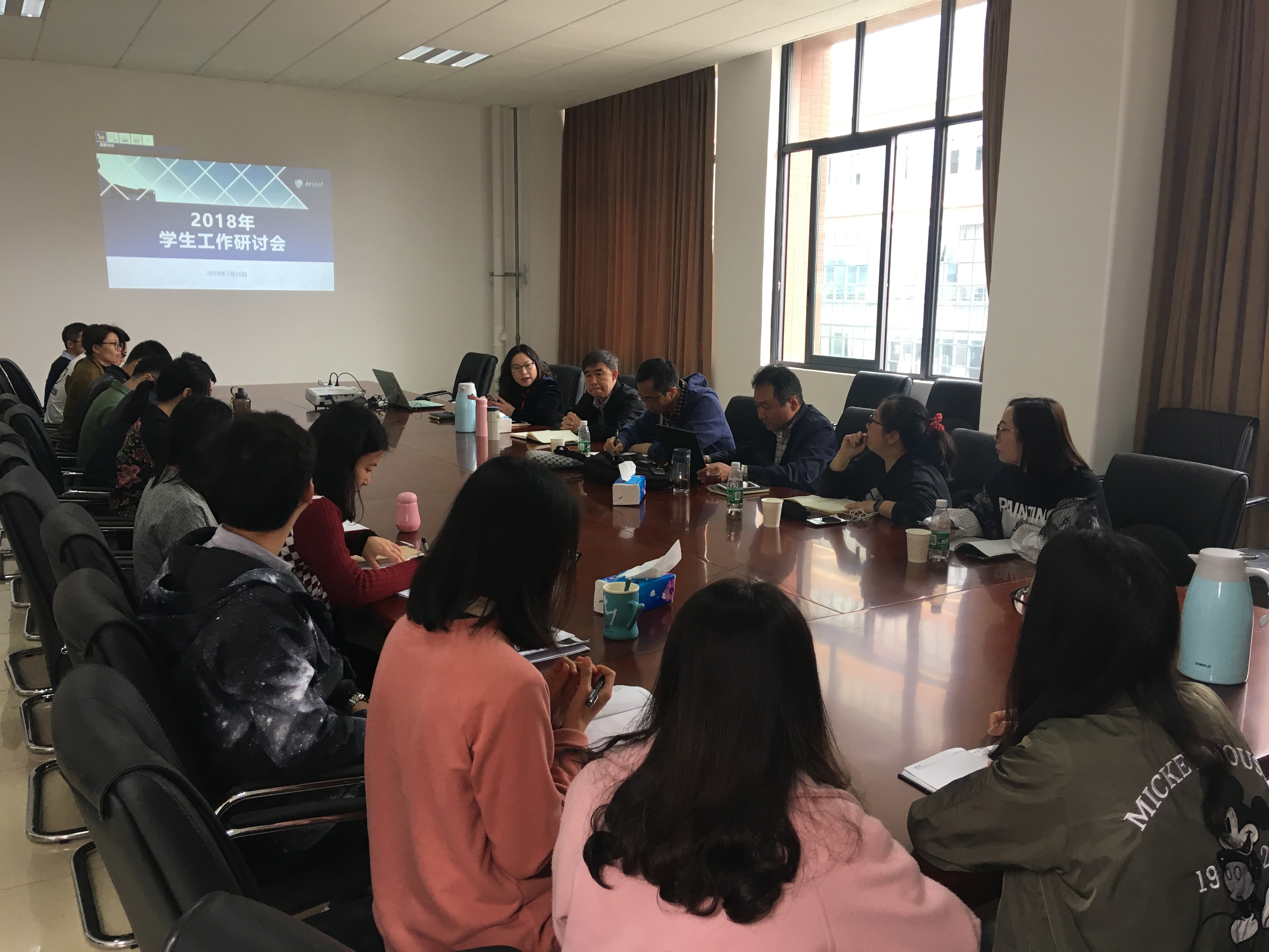 李书记首先介绍了本次研讨会的主要目的和今年员工工作的主要方向,简要解读了《高校思想政治工作质量提升工程实施纲要》和公司2018年员工工作要点的主要内容。接着,城轨运营管理系张素风副书记和员工工作组全体辅导员老师们分别就自己的2018年工作思路、重点和计划突破点进行了详细的介绍。与会人员围绕班风学风建设、党团建设、心理健康教育、公司文化建设等各大育人体系构建与协同展开了讨论。