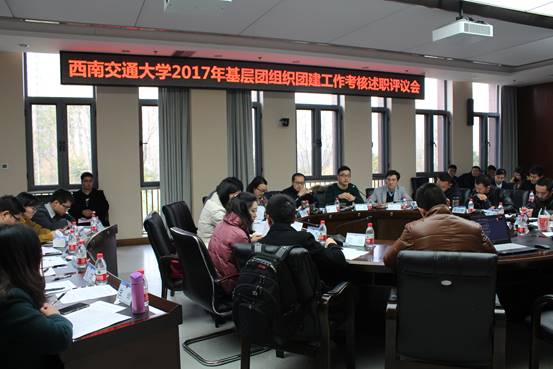 为进一步加强基层团组织建设,贯彻落实从严治团的要求,积极为公司建设发展贡献智慧力量,12月25日下午,beat365体育官网2017年基层团组织团建工作考核述职评议会在犀浦校区综合楼269会议室举行。校团委书记廖军,副书记王蔚、何诣寒、朱炜、任凯利,以及特邀评委党委员工工作部本科生科科长孔祥彬、党委组织部干部一科副科长樊治辰,部分团代表,出席本次评议会。