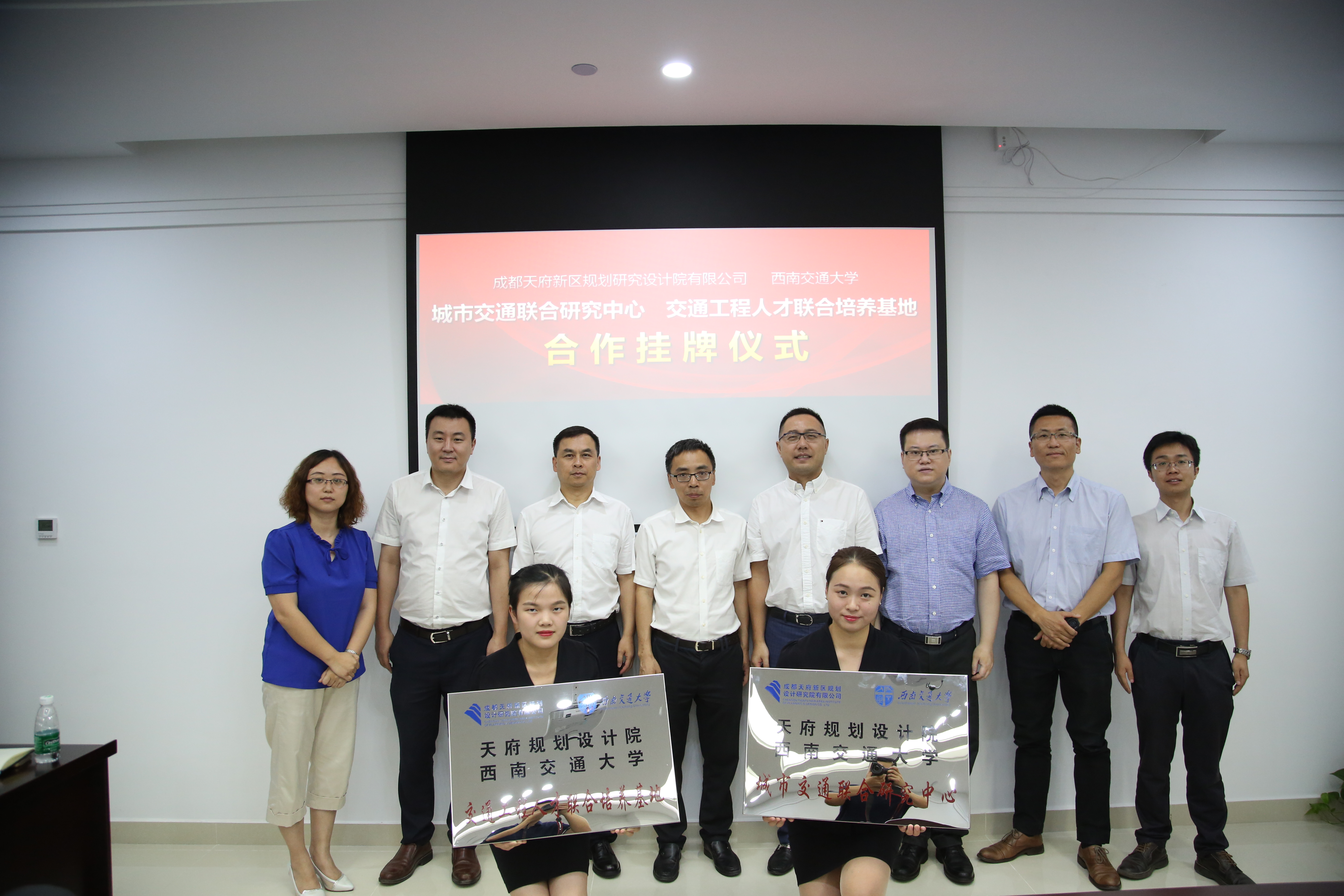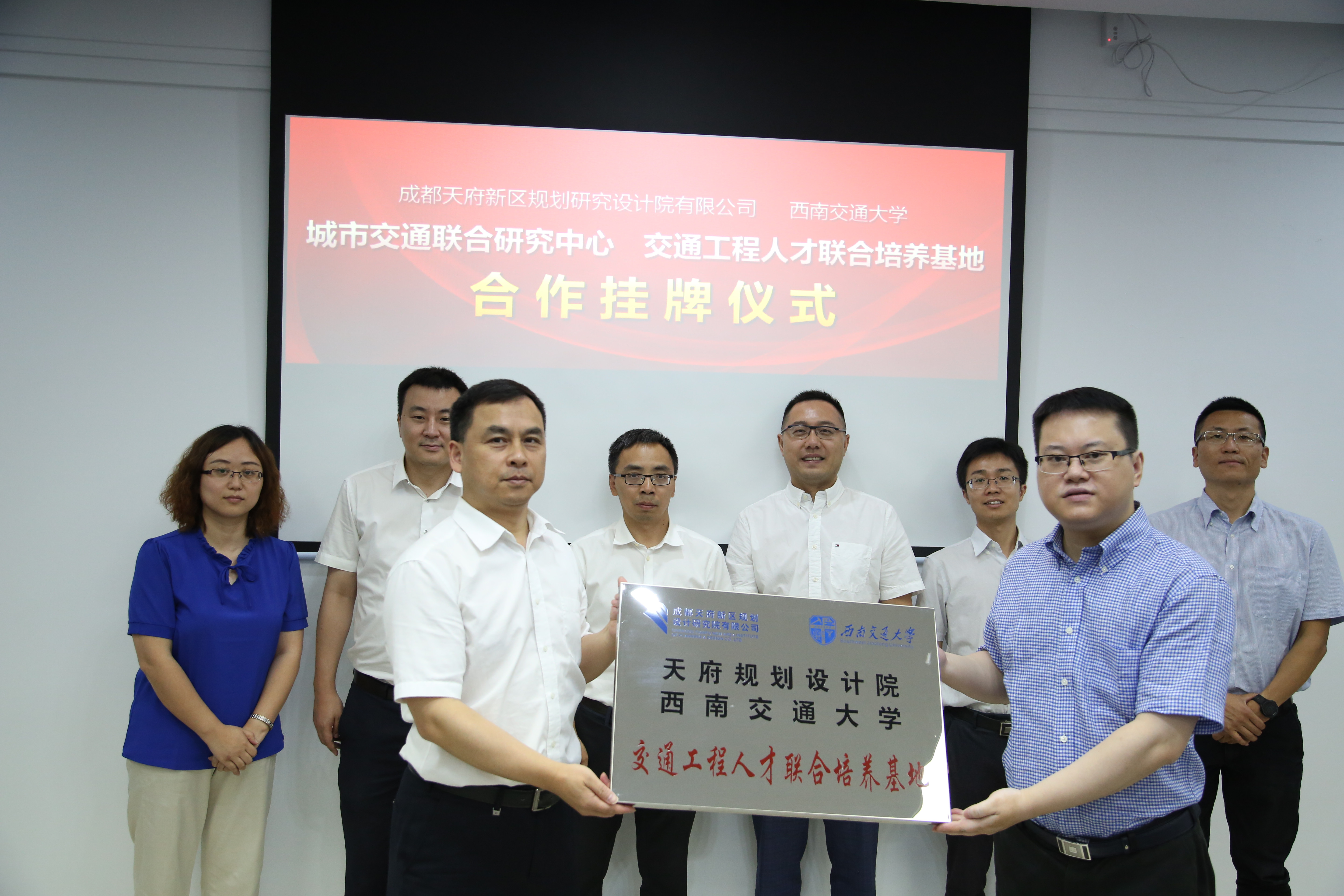 7月13日下午,公司交通工程专业与成都天府新区规划设计研究院有限公司(以下简称“天府规划设计院”)与联合创立的“交通工程人才联合培养基地”“及城市交通联合研究中心”在天府菁蓉中心A区顺利挂牌。beat365经理刘晓波教授、交通工程系主任杨飞教授、交通工程系副主任曹鹏博士,成都天府新区投资集团有限公司总经济师成大华、副总工程师兼工程技术管理部部长陈曦、人力资源部部长路阳及天府规划设计院总经理沈钊鹏、副总经理刘瀛婷等相关领导出席挂牌仪式。