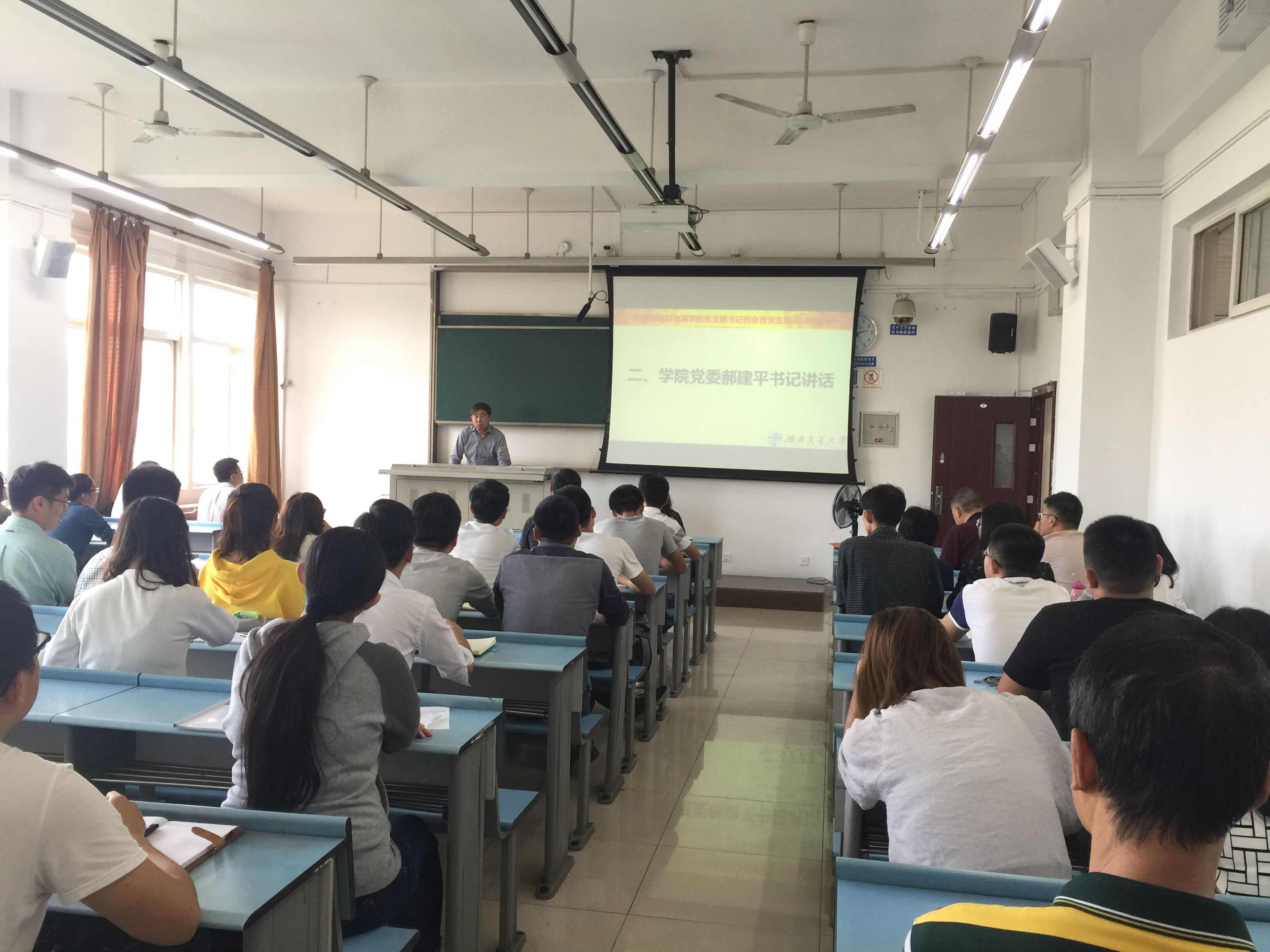 2017年9月28日下午2:00,beat365党委在犀浦校区X2527教室召开党支部书记例会暨党支部书记培训会,重点学习了习近平同志“7.26”讲话精神和公司十四届第八次全体(扩大)会议精神,并对“两学一做”学习教育常态化制度化督导要求进行了详细的部署。公司党委郝建平书记、党委李国芳副书记、党务秘书黄莺老师及全院教工、员工党支部书记出席了本次会议,会议由黄莺老师主持。