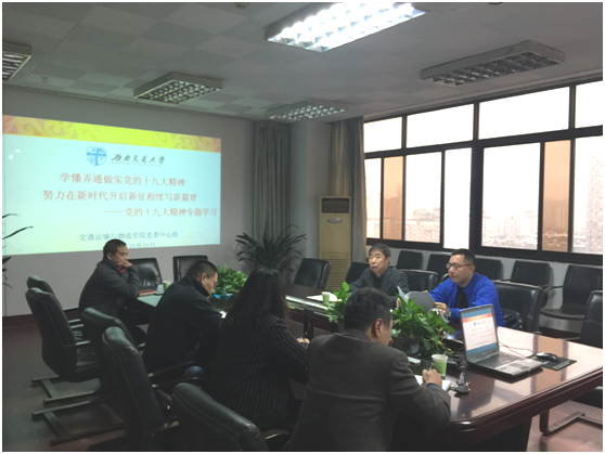首先,郝建平书记带领中心组成员专题学习了习近平总书记在党的十九大开幕式上所作大会报告和十九大会议精神。郝书记从会议主题入手,指出中国共产党第十九次全国代表大会,是在全面建成小康社会决胜阶段、中国特色社会主义进入新时代的关键时期召开的一次十分重要的大会,广大党员领导干部要不忘初心,牢记使命,高举中国特色社会主义伟大旗帜,决胜全面建成小康社会,夺取新时代中国特色社会主义伟大胜利,为实现中华民族伟大复兴的中国梦不懈奋斗。接下来,郝书记从报告的十三个方面全方位的对报告所提出的四十个新提法新举措进行了解读。