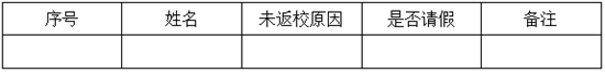 3.请各班班长于5月1日晚上20:00前按照附表2格式,将本班同学未返校情况提交至各辅导员邮箱。