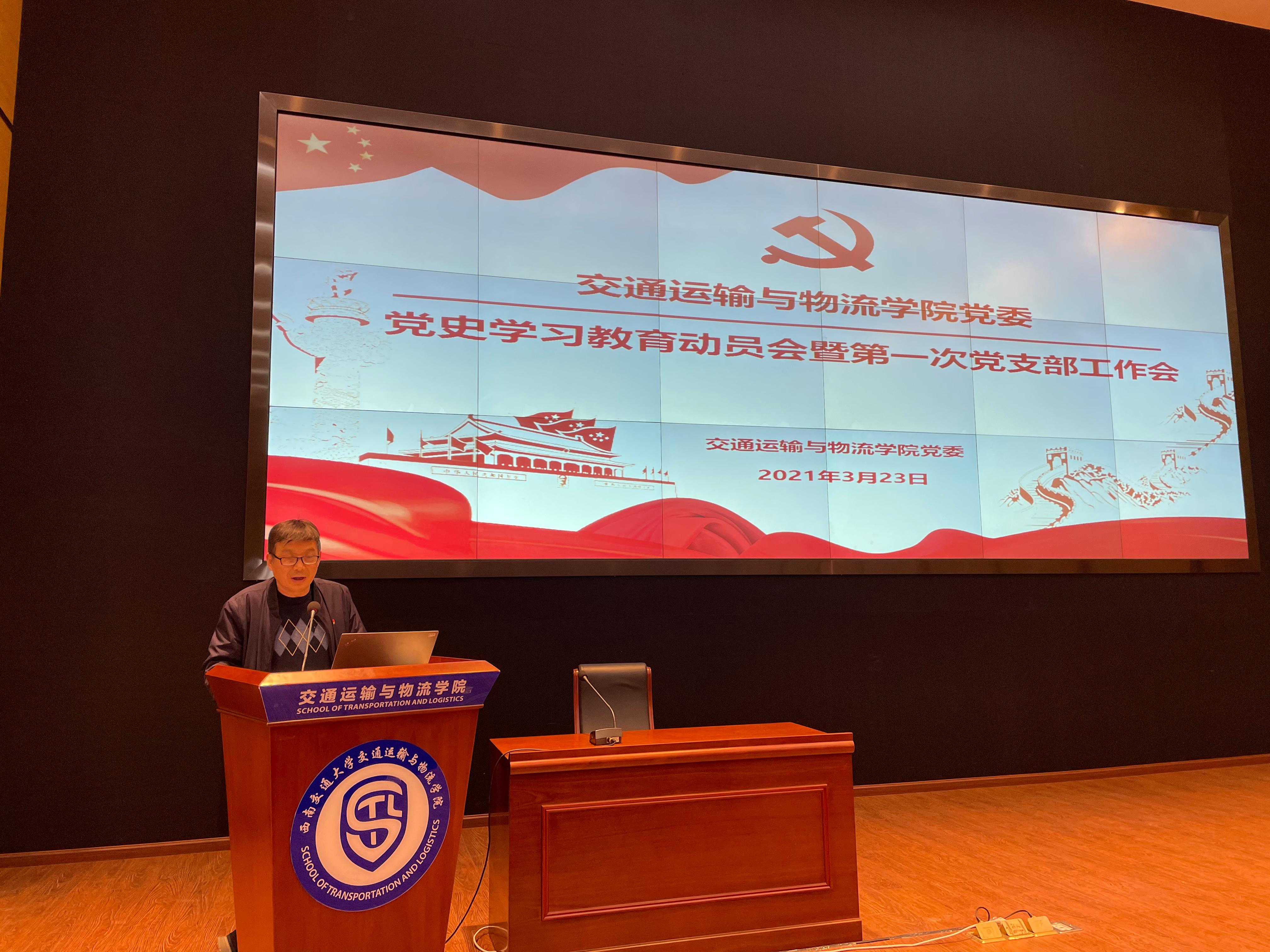 为学习贯彻习近平总书记在党史学习教育动员大会上的重要讲话精神,认真落实教育部、公司党委对开展党史学习教育进行全面动员和安排部署的通知要求。2021年3月23日下午,beat365党委党史学习教育动员会暨第一次党支部工作会在犀浦校区交运楼418会议室召开,beat365党委书记甘灵、党委副书记、纪委书记李国芳、党委副书记王正彬出席会议,公司全体师生党支部书记、支委参加会议。会议由公司党委副书记王正彬主持。