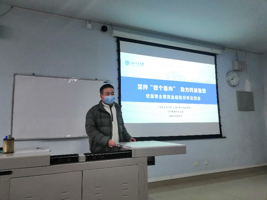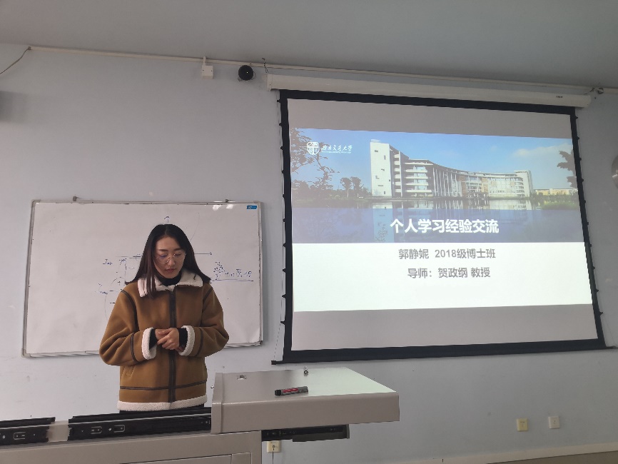 2020年12月25日,博士2018级党支部在X9538教室举行了“坚持‘四个面向’,助力科技创新”的优秀博士生经验分享交流会活动,活动邀请了2018级博士研究生郭静妮、李琳、徐君翔做学术交流分享。活动由博士18级党支部书记罗洁主持。