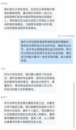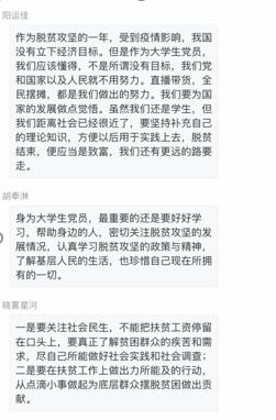 微党课的开展让党员同志既看到了青春之花的绚丽绽放,看到了中国制度的优势所在,也看到了科学技术的庞大力量,进一步增强了党员责任感与使命感,激发了党员同志们的爱国情怀,党员同志们表示体会颇深,在腾讯会议室、QQ群等线上平台中纷纷发表学习感悟。