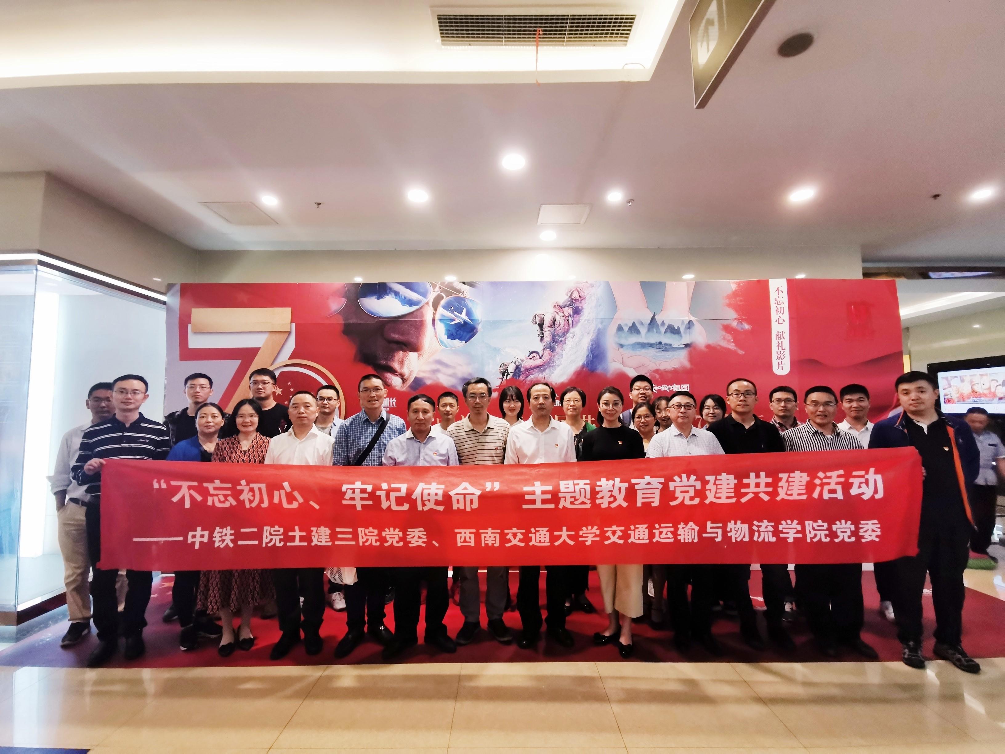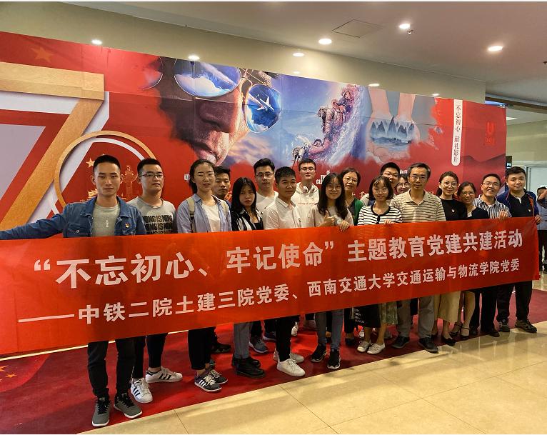 beat365党委与中铁二院土建三公司党委围绕“不忘初心、牢记使命”主题教育活动,积极开展“三共”活动之共颂祖国、共看红剧活动。9月30日,beat365党委王正彬副书记带队,组织公司各系教师党支部书记、支部委员和部分员工党员代表与中铁二院土建三公司党员100余人共看红剧——《中国机长》,在观影结束之后共唱《我和我的祖国》。