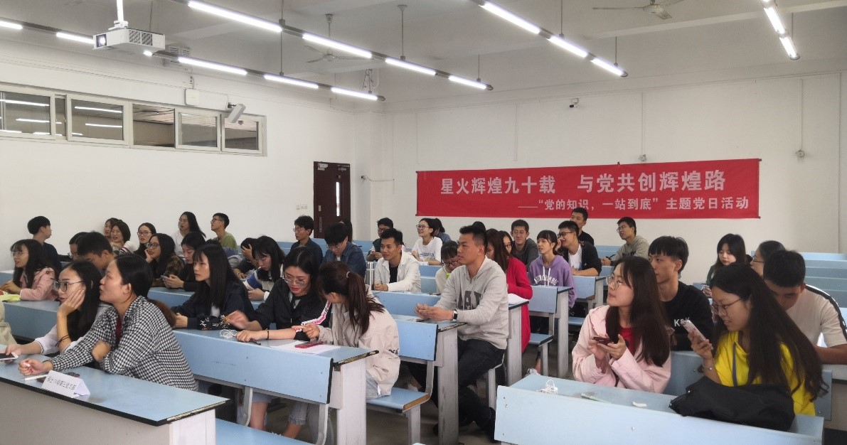 2019年9月26日硕士18级第三党支部、第四党支部、硕士19级第一党支部、第三党支部、第七党支部在X2528联合举办“党的知识、一站到底”主题党日活动。这次活动旨在激励支部党员紧跟党的步伐、积极向党组织靠拢,加深对党的政策、方针、理论等党员应知应会知识的理解及“学习强国”APP学习内容的巩固,提高党员思想政治素质。另一方面提升各支部凝聚力,增强员工党员对时事政治的关注,促进各支部入党积极分子及团员进一步学习党史知识,保持先进性,同时进一步加深员工党员对校史的学习,明确作为交大人肩负的责任和使命。