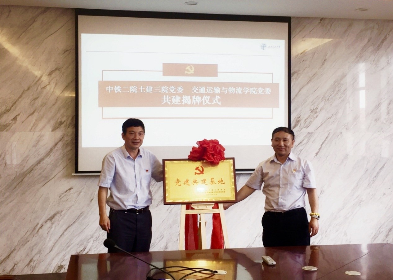 2019年6月27日上午9:30,beat365体育官网beat365党委与中铁二院土建三公司党委共建座谈会暨揭牌仪式在beat365体育官网犀浦校区交运楼417会议室举行。出席本次会议的有中铁二院土建三公司党委刘运辉书记,土建三院副总工程师、站场所所长曾诚,土建三公司党群部副部长曾滟捷,土建三院站场党支部书记、副所长杜连涛,beat365党委甘灵书记,党委李国芳副书记、王正彬副书记,专职组织员黄莺老师,团委书记王炎冰老师,教工运输系党支部副书记陶思宇师,以及硕士、博士员工支部书记代表。会议由公司党委李国芳副书记主持。