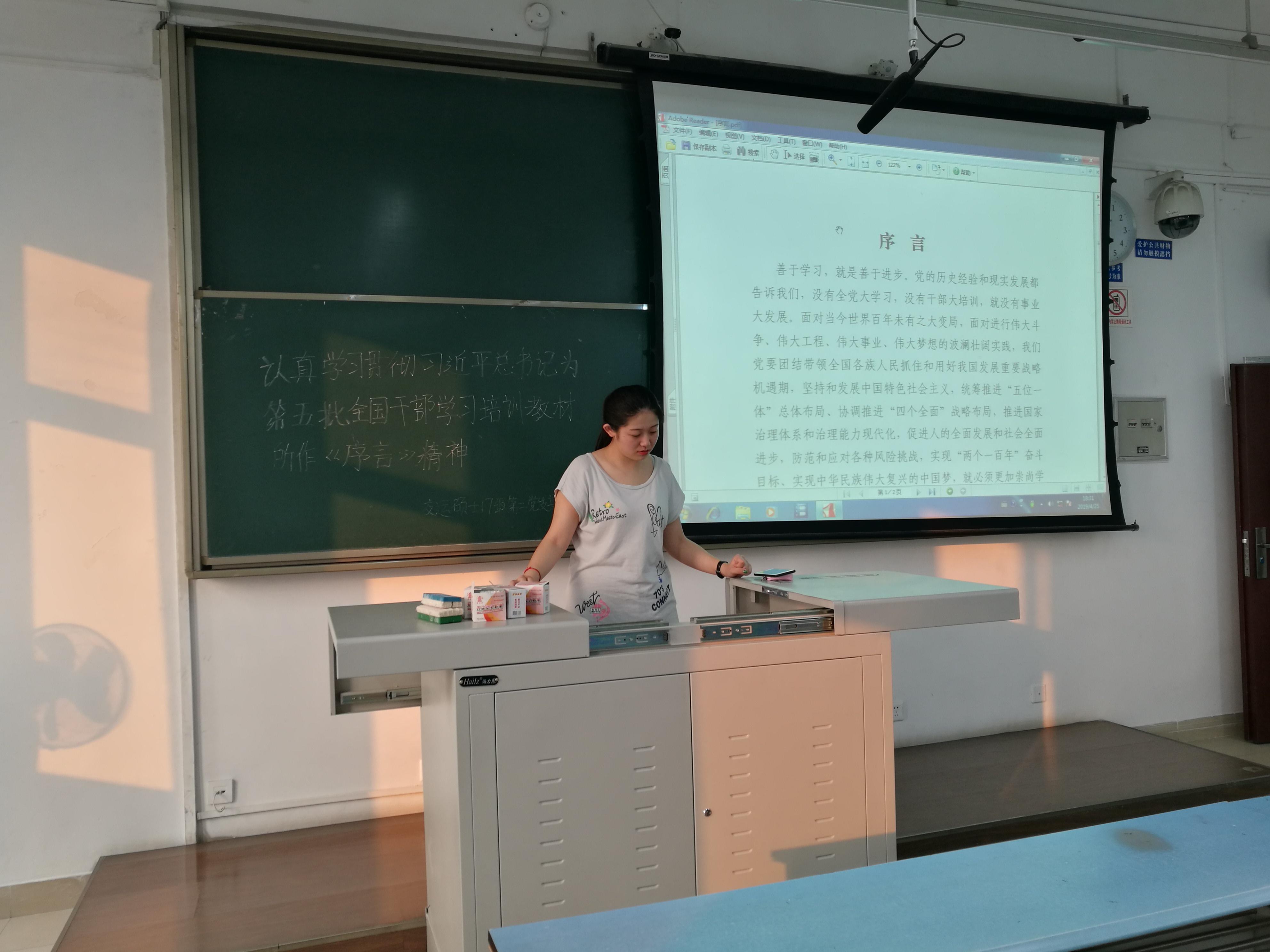 杨天旻同志首先介绍了习近平总书记所作《序言》的背景,继而对《序言》中蕴含的内涵作了详细介绍。习近平总书记在《序言》中阐述了学习的重要性,强调了要坚持把学习贯彻新时代中国特色社会主义思想作为重中之重,坚持理论同实际相结合,悟真理、求真理、明事理,讲述了培训教材的重要意义,要求各级各类干部教育培训注重用好教材。支部党员认真听取学习。