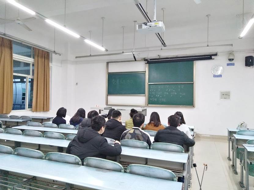 2019年3月14日星期四下午15:45-17:30,交运硕士2017级第三党支部党组织生活会在犀浦校区二号教学楼X2601顺利举行,活动的主题是认真学习贯彻《中共中央关于加强党的政治建设的意见》和《中国共产党重大事项请示报告条例》。本次组织生活会由王超宇同志主讲。