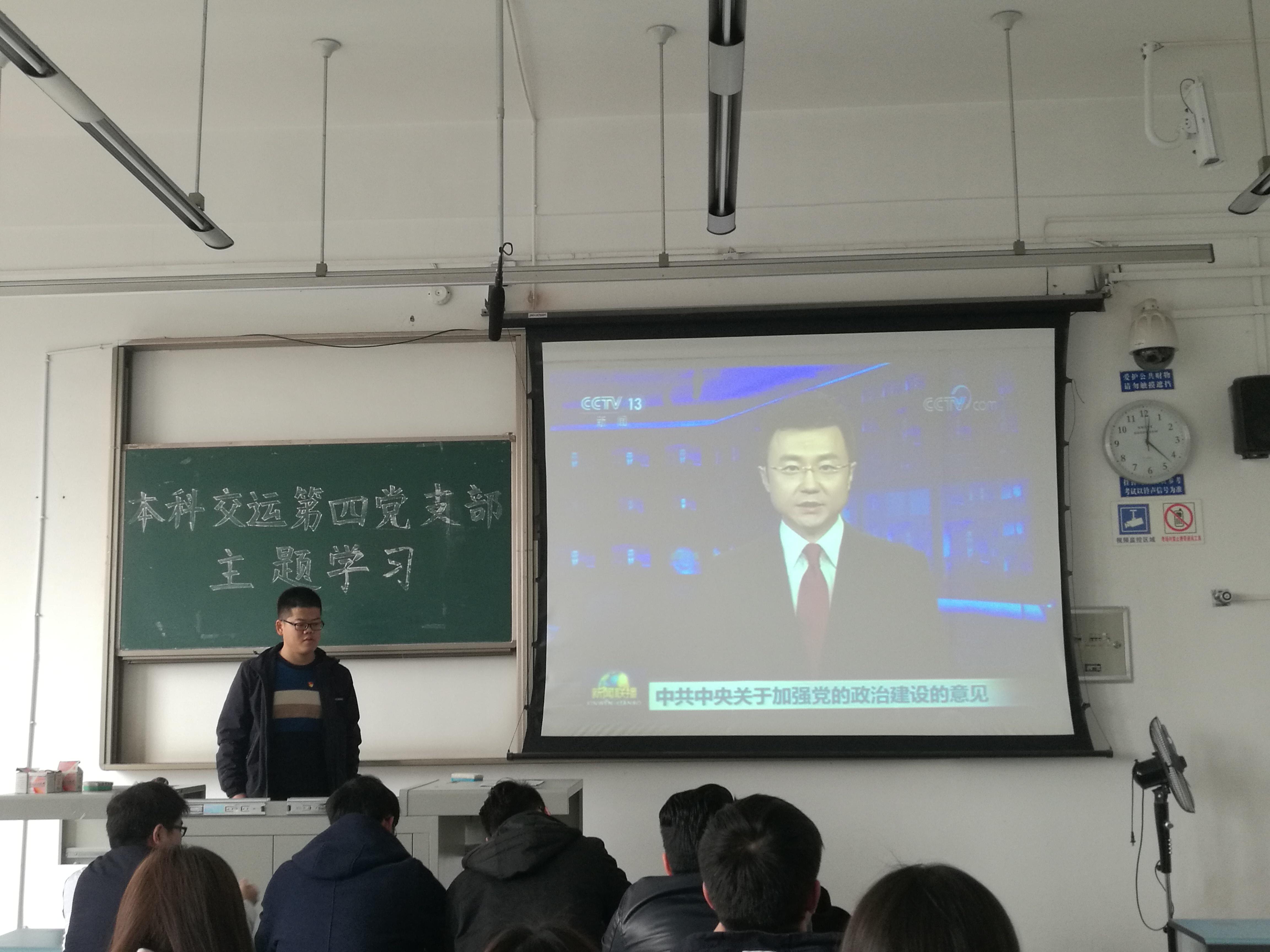 中共中央近日印发了《中共中央关于加强党的政治建设的意见》(以下简称《意见》)和《中国共产党重大事项请示报告条例》(以下简称《条例》),为认真组织学习《意见》《条例》,使广大党员准确把握重要意义、主要内容和工作要求,深刻认识到《意见》对加强党的政治建设做出重要部署的重要意义和《条例》对于坚决做到“两个维护”、保证全党团结统一和行动一致的重要意义。2019年3月14日,本科交运第四党支部在X2423教室集中开展“认真学习贯彻《中共中央关于加强党的政治建设的意见》和《中国共产党重大事项请示报告条例》”组织生活会,重点学习和解读了《意见》和《条例》具体内容和要求。本次活动由支部郑康康同志主持。