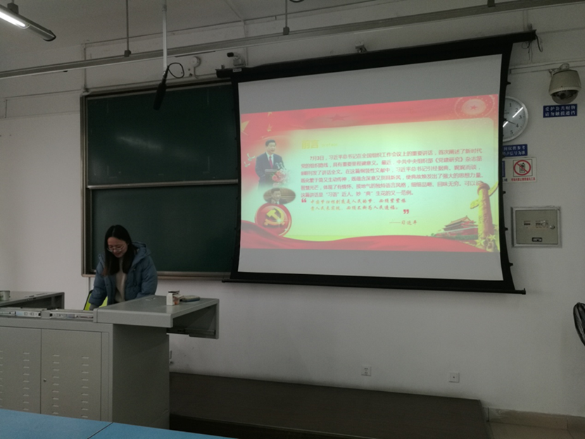 徐杭同志首先向支部成员介绍了什么习近平总书记用典,随后带领大家学习了部分用典。如:“欲筑室者,先治其基”,是指基层党组织是党执政大厦的地基,地基固则大厦坚,地基松则大厦倾,可见建设基层党组织的重要性。
