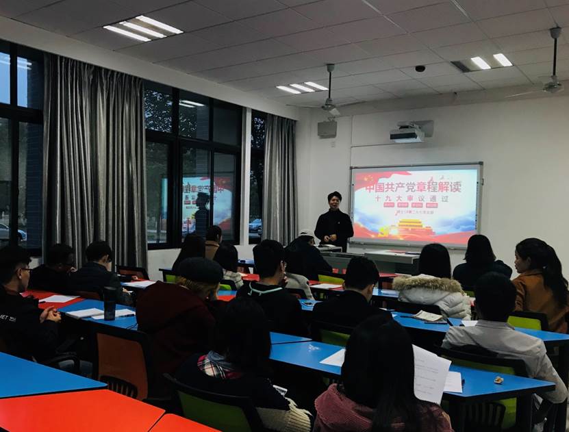为贯彻落实新时代党的组织路线,奋力开创公司党的建设新局面,2018年11月15日硕士18级第二和第七党支部在X4133教室集中学习了习近平总书记在全国组织工作会议上的讲话和十九大审议通过的《中国共产党章程(修正案)》。本次活动由第七党支部书记陈木泉同志主持。