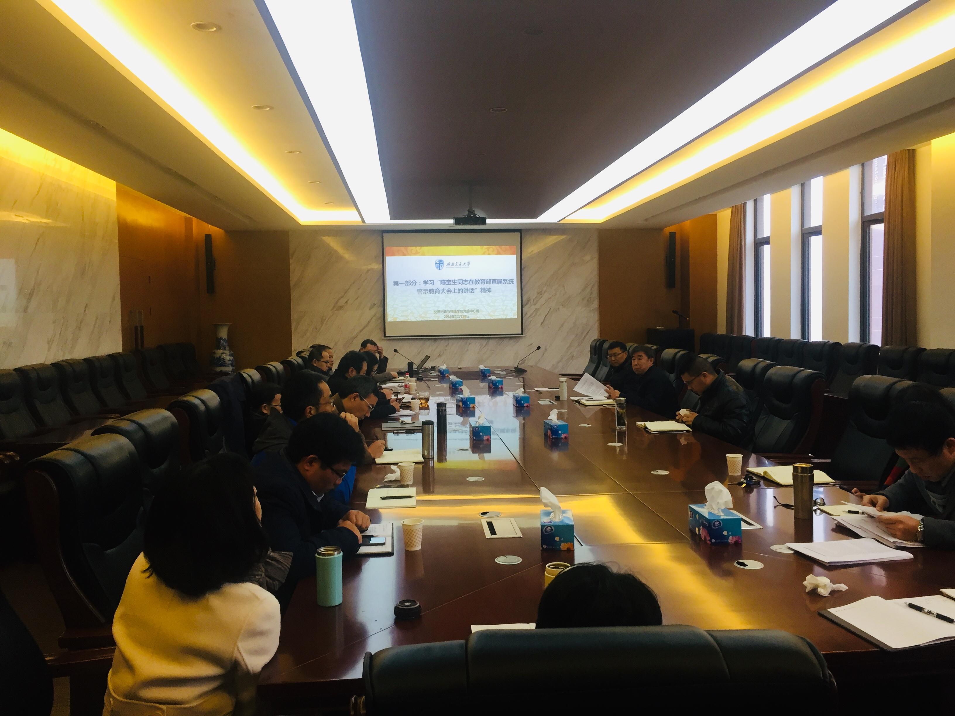 beat365党委于2018年11月28日上午9:00在犀浦校区交运楼417会议室召开党党委中心组学习(扩大会),出席会议的有公司中心组成员、党委委员和纪委委员,会议由党委郝建平书记主持。学习包括两个专题,第一个专题由公司党委书记郝建平同志带领大家集中学习了陈宝生同志在教育部直属系统警示教育大会上的讲话精神,第二个专题由公司纪委书记李国芳同志解读了公司围绕全面从严治党工作,出台的五项制度文件。