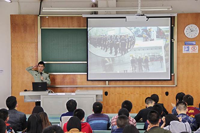 宣讲会以热播剧《人民的名义》中老党员陈岩石从入党的初心展开讲述抗日战争时期党员的“特权”开场。视频播放结束后,公司交运类国防生党支部和物流类国防生党支部的陈文杰、张欣、陈顺、刘经纬、刘佳文五名同学以历史的进程为线索,依次上台讲述了不同时期英雄人物的事迹。陈文杰同学首先介绍了3月26日本科交运类国防生党支部、物流类国防生党支部、本科交运第七党支部及部分国旗班同学在王炎冰老师、李清滢老师的带领下赴成都市烈士陵园进行的缅怀先烈的祭扫活动。张欣同学随后介绍了“对越反击战”中出现的代表人物。陈顺、刘经纬、刘佳文同学分别分享了防爆警察何晓雨、邱光华机组、女飞行员余旭的光荣事迹,赞美和怀念了这些为国牺牲、为革命事业献出生命的英雄人物。通过这样的分享,希望党员发展对象们可以铭记这个英勇无畏的人民警察,铭记3月14日国际刑警日,也铭记这个流血最多,牺牲最大的群体。在讲述邱光华这个为抗震救灾献出生命的英雄时,刘经纬同学还提到了我们身边的英雄——郭晨阳,希望同学们能以他为榜样,做有本事,有血性,有灵魂,有品德的交大人。女飞行员余旭在八一飞行表演训练的意外跳伞失败,光荣牺牲。党员发展对象们应该记住这个勇敢的女军人,同时,也肩负起自己身上的责任。