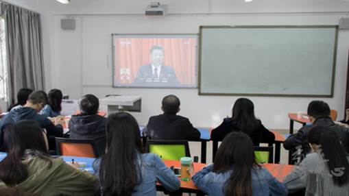 2017年10月18日上午9时,beat365体育官网beat365党委郝建平书记、李国芳副书记、员工工作全体辅导员老师、公司研究生、本科生党支部部分党员代表于X2109观看中国共产党第十九次全国代表大会开幕式。