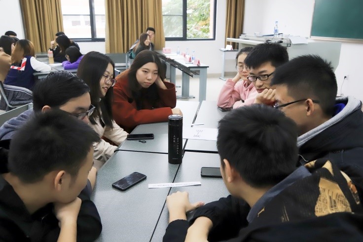 接下来,彭老师将现场的同学分为4组,分别针对不同的就业问题进行讨论和分享。彭老师建议同学们多参加面试、招聘会,了解行业行情,提前做好就业准备;并告诫同学们,面试是“术”的沉淀,而能力是“道”的沉淀,学好专业技能,锻炼自己的表达、沟通、组织协调能力,才是首要任务。