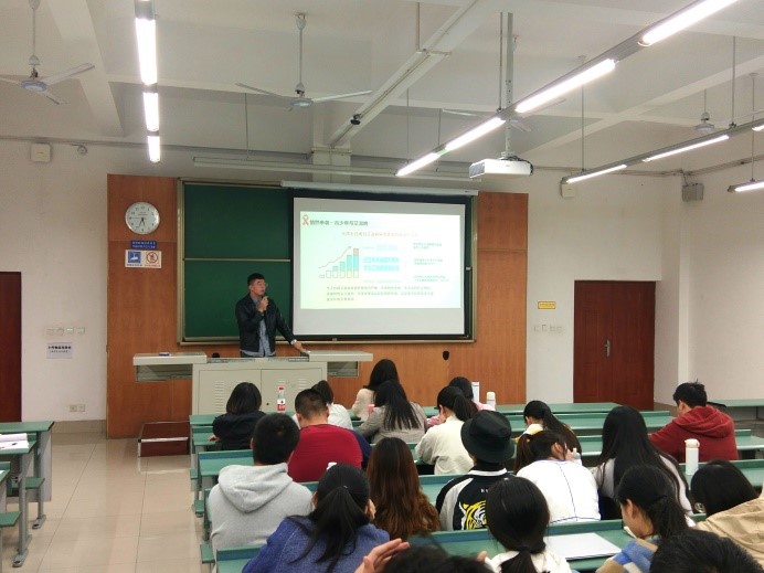 接下来,黄琰老师以“艾滋病防控知识专题教育”为主题,从艾滋病的概况、临床表现、传播途径三方面进行了介绍,并“举例说艾”,结合实际案例对艾滋病的传播进行了说明。黄老师建议同学们在艾滋病的防控中做到:自尊自爱,不使用未经检测的血液,不吸毒,不要乱吃乱碰,避免与患者进行体液的接触。