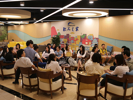 午饭后的员工交流环节:在该公司就职的beat3652014届毕业生代表刘月涵、2015届毕业生代表林菁分别向大家分享了自己的就业经验,并耐心解答了同学们有关求职意向、公司人才发展体系、TOD在城市更新中的作用以及不同专业在TOD团队里的协调分工等问题。
