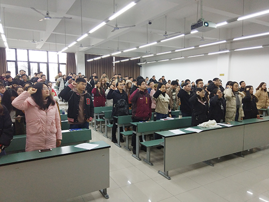 紧接着,吴桐老师带领大家一起学习了《考试违规处理办法》,详细讲解了校规校纪对考试的要求,一遍遍的告诫同学们一定要诚信考试。为大家展示了历年违反公寓管理办法和诚信考试守则的同学,公司所给予的处罚公告,再一次强调了一定要诚信考试,一定要加强宿舍安全意识。最后,在张志博同学的带领下,全体同学庄严宣誓:“严守校规,诚信无量。远离作弊,尊严至上。”