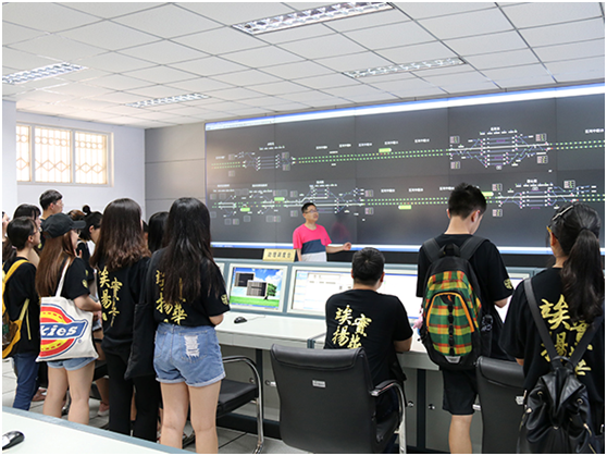 在实验室老师们的精彩讲解中,营员们首先参观了高速铁路驾驶行为仿真系统,该系统通过运动型列车驾驶仿真器(FMS-M)和静态型列车驾驶仿真器(FMS-S)模拟高速列车组的操纵环境、故障应急处理、非正常行车处理和突发事件处理训练。
