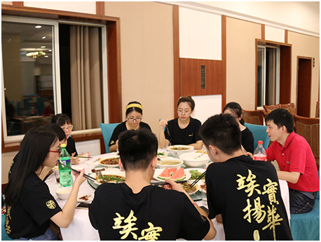 晚上,公司在犀浦校区风华园餐厅为营员们准备了丰盛的晚餐,表达了beat365对学子们的热烈欢迎,同时,师生共进晚餐,也促进了师生们的交流,给员工们更多了解beat365的机会。