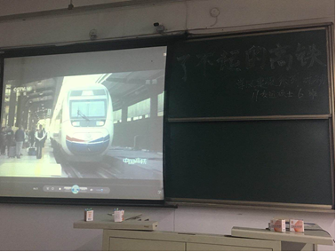 另一位同学谈到:“中国高铁以前困难重重,中国铁路人坚持忍辱负重,坚持到了现在,中国高铁走出国门去,走向世界,中国铁路人一直坚持中国铁路精神,坚持不放弃,作为未来中国铁路人的一部分,我们要秉持这种精神,为中国高铁贡献一份力量!”大家都很认可并热烈鼓掌。