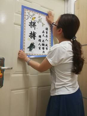 在介绍完班级学风建设的意义和目的之后,对参加活动的员工代表发放励志贴纸和绿色植物。以宿舍为活动建设单位,开展宿舍小团体学习竞赛、张贴座右铭等提高宿舍学习氛围的相关活动,加强室友之间的相互交流,增进同学感情,提高班级凝聚力。