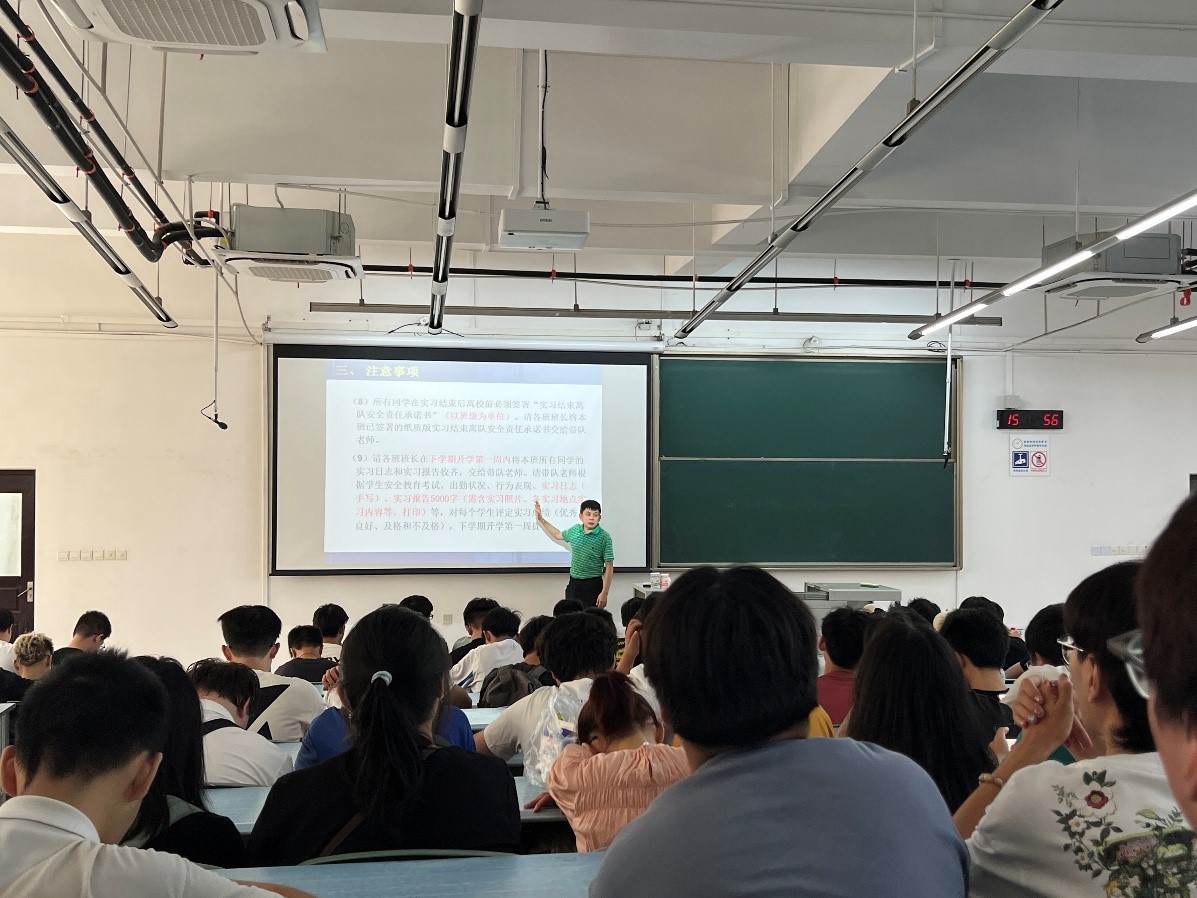 陶思宇副教授结合《认识实习大纲》、《认识实习指导书》及相关知识,开展了安全教育培训,强调了本次实习的注意事项和安全纪律,他强调,实习是一次宝贵的学习和实践机会,一定要牢记安全第一,他详细列出了多条安全纪律规定,要求同学们务必牢记于心,并在实习过程中严格执行。